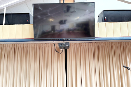 The facility is composed of a large stage, numerous seating possibilities and is equipped with a new Sound system, Stage lighting, Projectors, widescreen TV´s and much more. Please contact for more information!